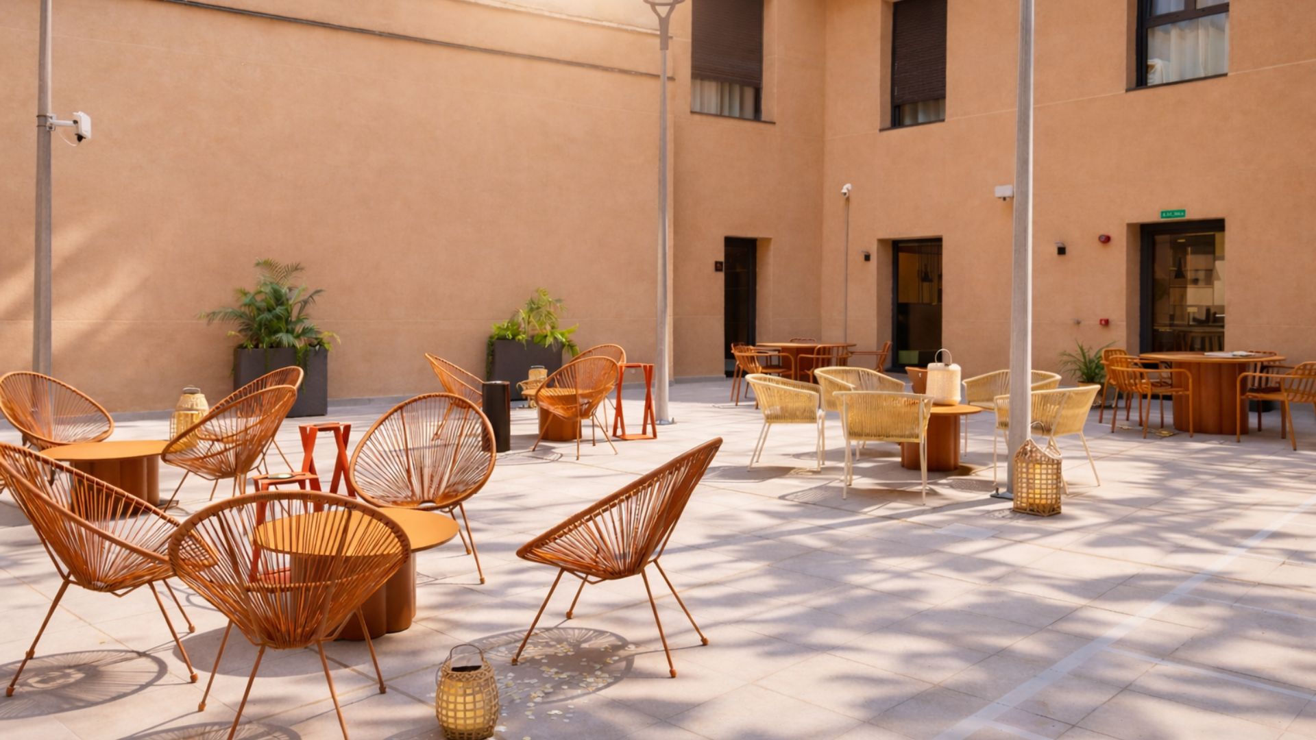 A terrace with tables and chairs: the ideal space to enjoy the fresh air, study, or relax in good company.